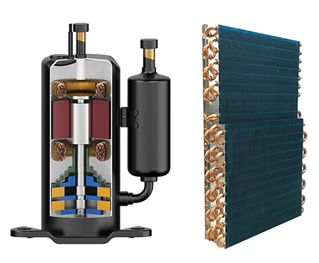 采用品牌旋轉式封閉壓縮機與(yu) 親(qin) 水鋁箔換熱器及內(nei) 螺紋銅管,真材實料的全銅質線圈使得製冷速度更快,效率更高,壽命更長。