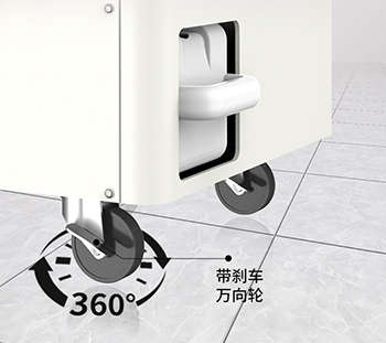 機器采用了帶有刹車的萬(wan) 向輪設計,方便移動到任意空間角落進行使用。